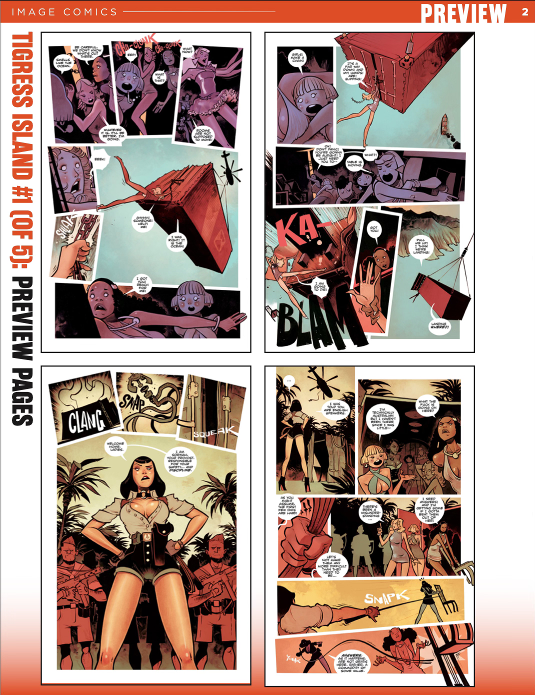 “This one is for every reader who isn’t getting enough flavor in their weekly comics haul,” said Kindlon. “From concept to characters to execution, Tigress Island is unapologetic fun. High craft. Lowbrow. Awesome.”